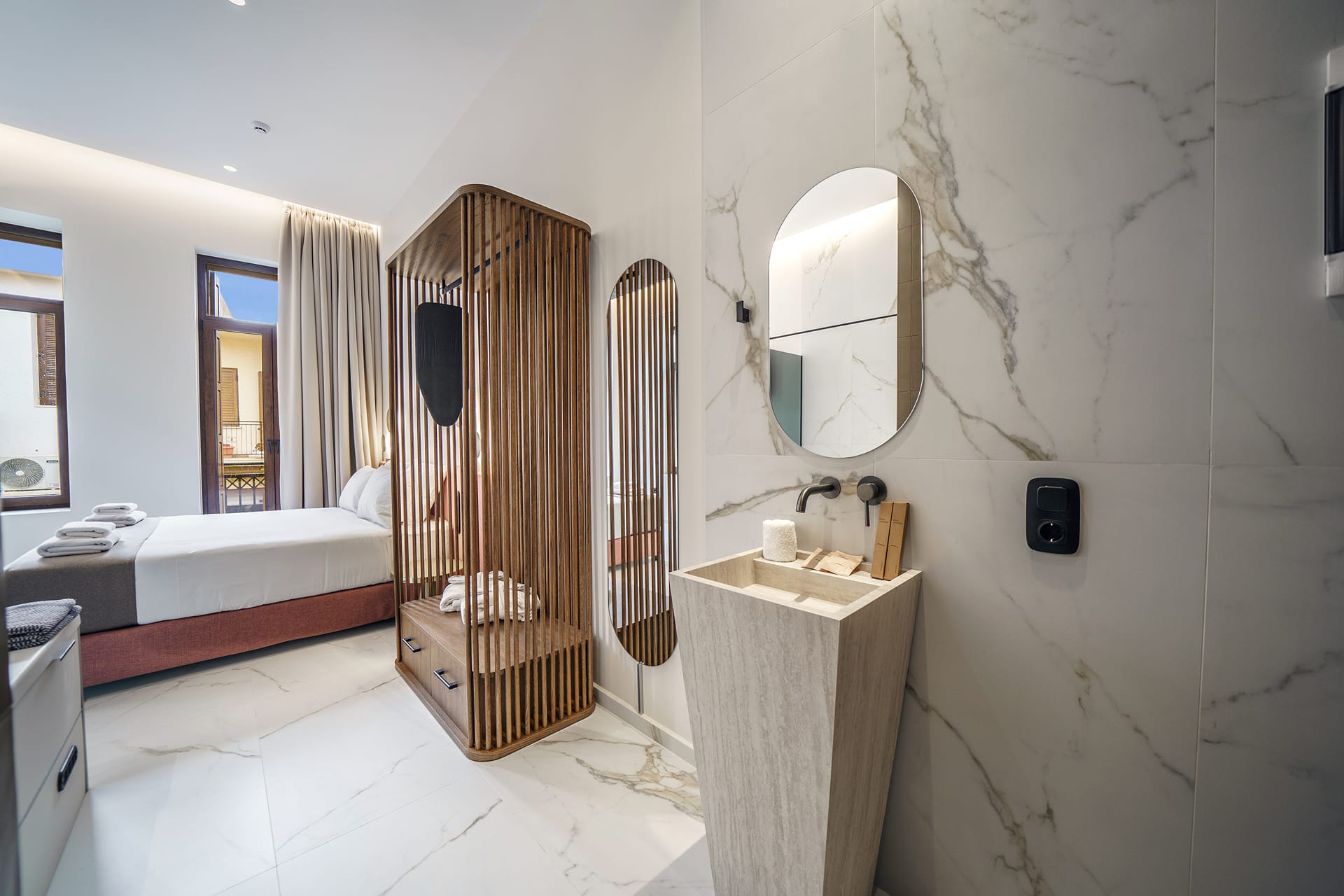 Experience comfort, elegance, and relaxation in this beautifully designed Queen Suite, ideally located in the heart of Rethymnon Old Town. Blending modern luxury with the charm of a historic setting, this suite is perfect for couples or travelers seeking a peaceful yet central stay.